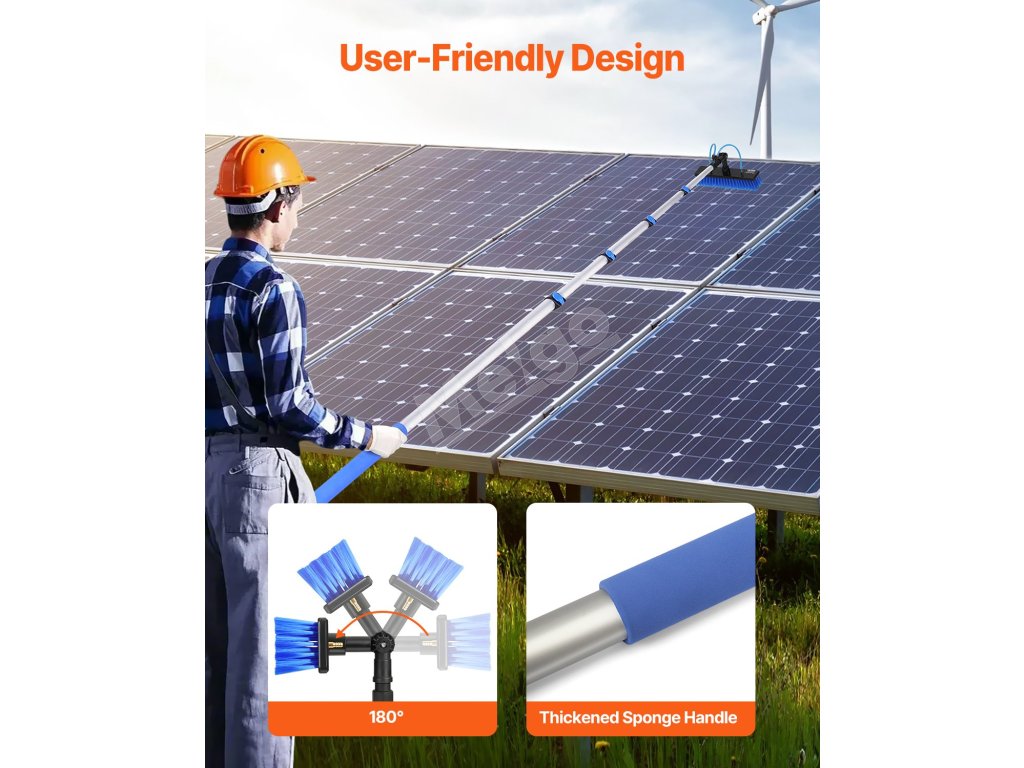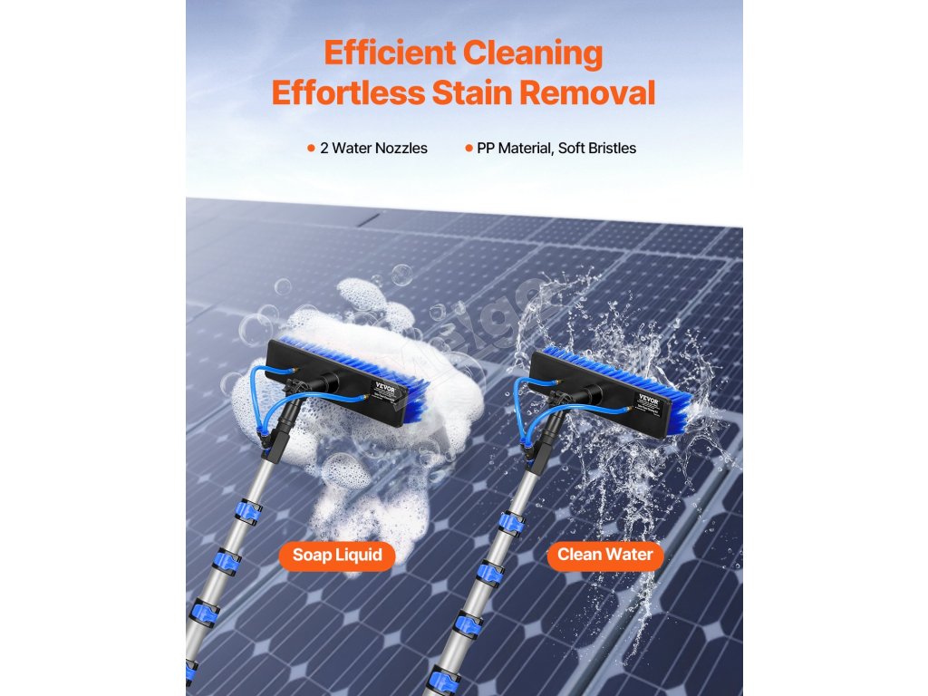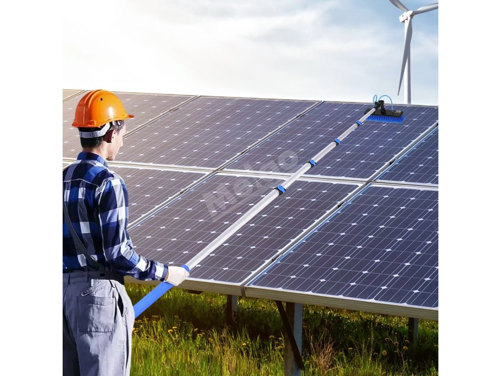 Tyč na čistenie solárnych panelov 9 m, výsuvná, 180° kefa, hadica 20 m