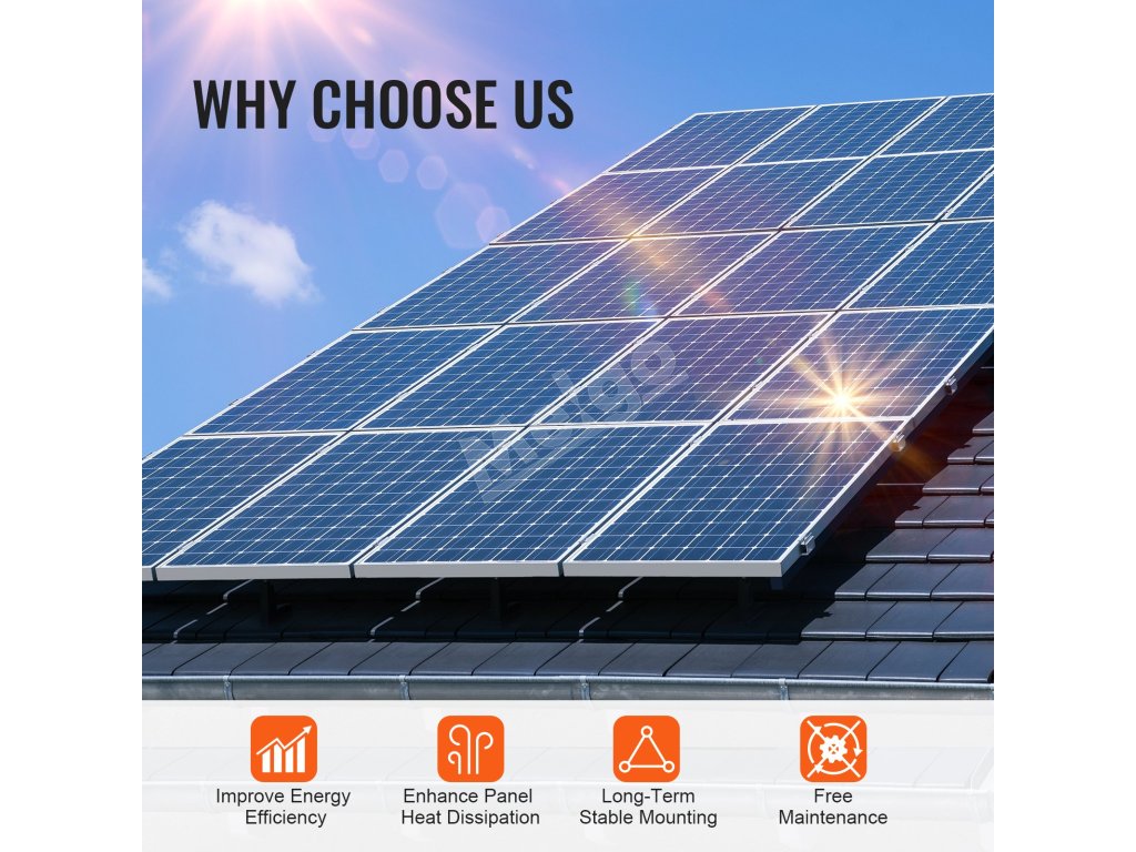 Prečo si vybrať montážnu konzolu VEVOR pre solárne panely? Zväčšením medzery medzi solárnym panelom a strechou účinne zlepšuje vetranie a odvod tepla, čím zabraňuje prehrievaniu a predlžuje životnosť vašich solárnych panelov.