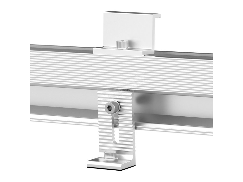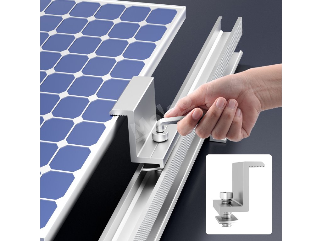 Táto montážna súprava obsahuje 2 typy svoriek na zabezpečenie bezpečnejšej inštalácie. 6 stredových svoriek upevňuje susedné panely k sebe a 4 koncové svorky poskytujú dodatočnú podporu tým, že zabezpečujú okraje panelov, čím zabezpečujú, že váš solárny panel je pevne na svojom mieste.