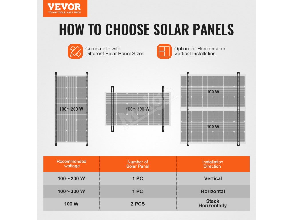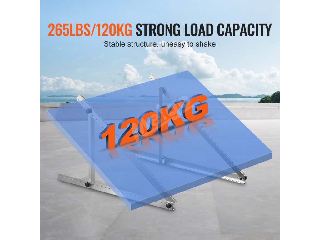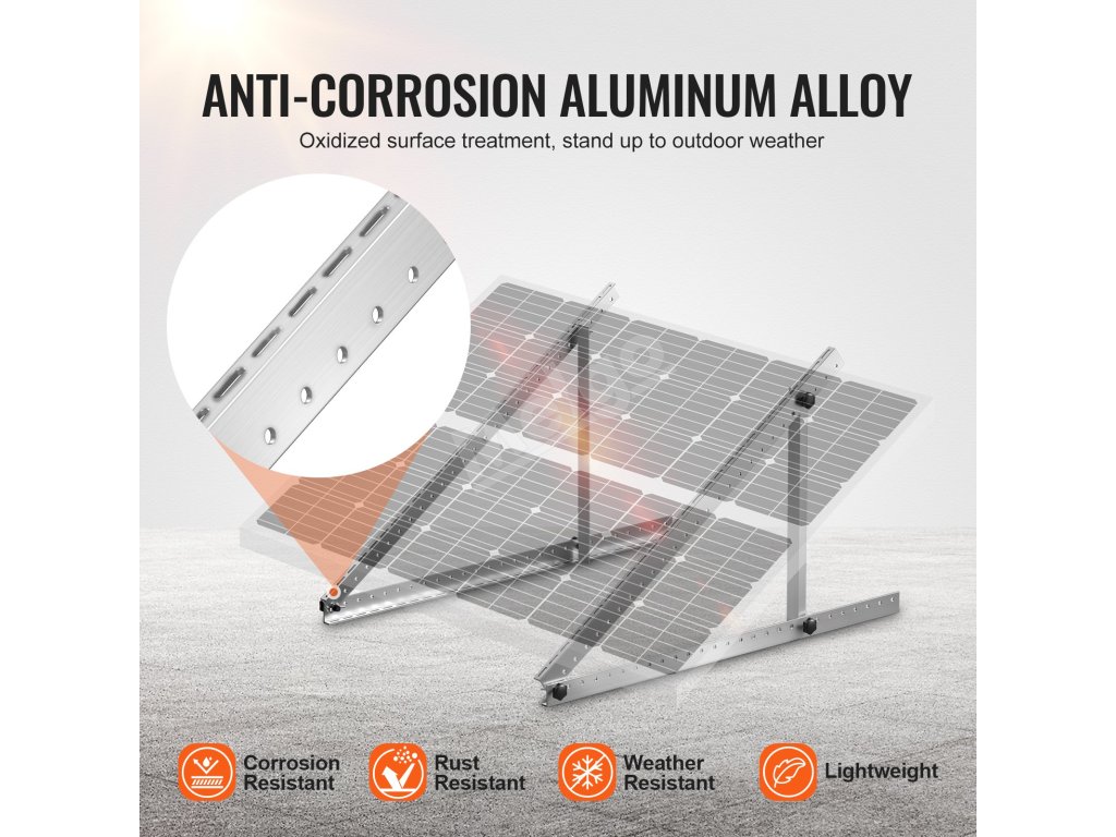 Vyberte si montážnu konzolu solárneho panelu VEVOR pre spoľahlivú podporu. Flexibilné nastavenie v rozmedzí 0–90° maximalizuje vystavenie slnečnému žiareniu a energetickú účinnosť. Nosnosť 265 libier a konštrukcia z eloxovanej hliníkovej zliatiny poskytujú dlhodobú stabilitu, čo z nej robí ideálnu voľbu pre inštaláciu solárnych panelov.