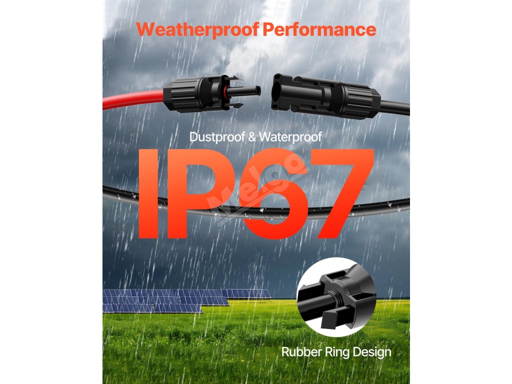 Solárny predlžovací kábel 6mm²/10AWG 9.14m/30FT ×2 vodotesné konektory
