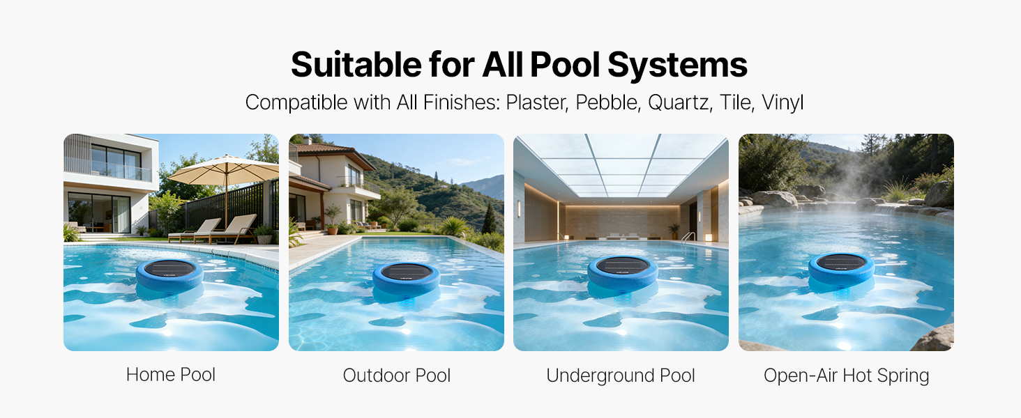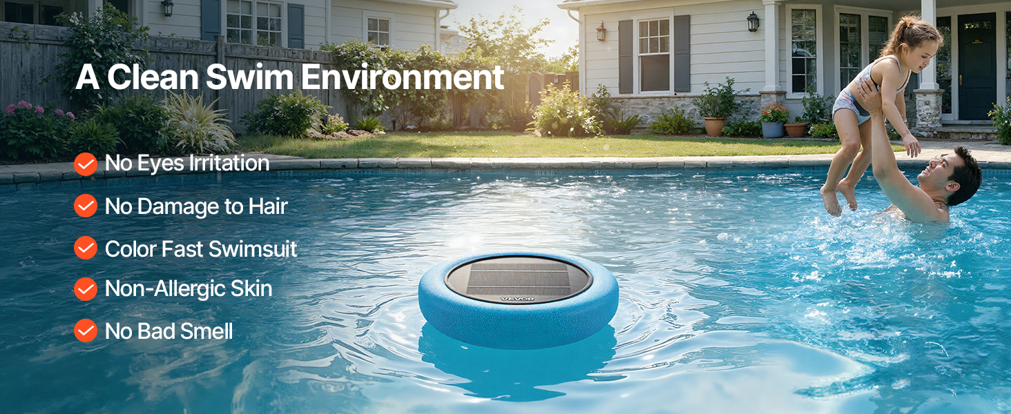 Nie sú potrebné žiadne nástroje ani externý zdroj energie. Jednoducho nechajte solárny ionizátor medeného bazénu plávať vo vašom bazéne a ten bude fungovať na solárnu energiu. Funguje so všetkými typmi bazénov (so slanou vodou aj chlórom) a je kompatibilný so všetkými materiálmi povrchu bazénov.