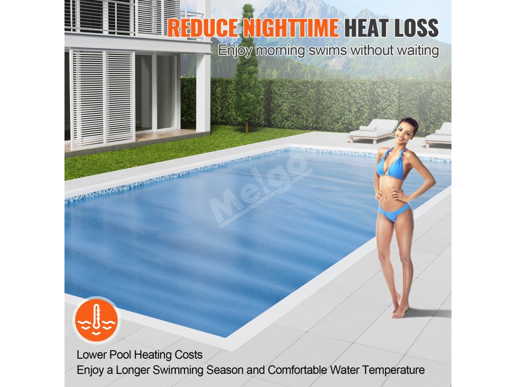 Solárna krycia plachta pre bazény absorbuje teplo počas dňa, čím zvyšuje teplotu vody a znižuje tepelné straty v noci. Uzavreté bubliny uchovávajú tepelnú energiu a poskytujú vynikajúcu izoláciu. Užívajte si teplý bazén aj počas chladných nocí, vďaka čomu je vhodný na kúpanie kedykoľvek.
