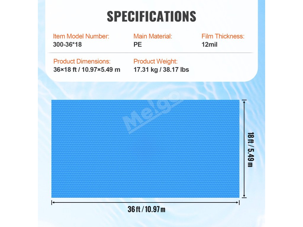 Solárna plachta na bazén 36×18 ft obdĺžnik 12 mil modrá pre nadzemné