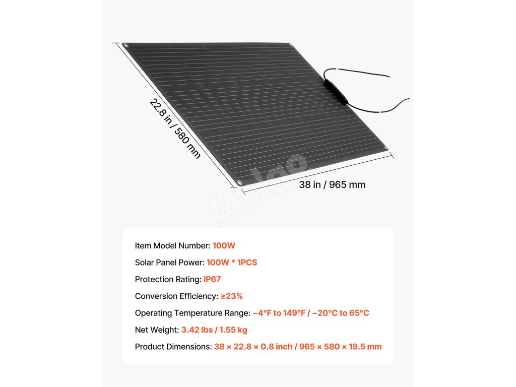 Flexibilný solárny panel 100W monokryštalický 23% IP67 MC4 pre karavan