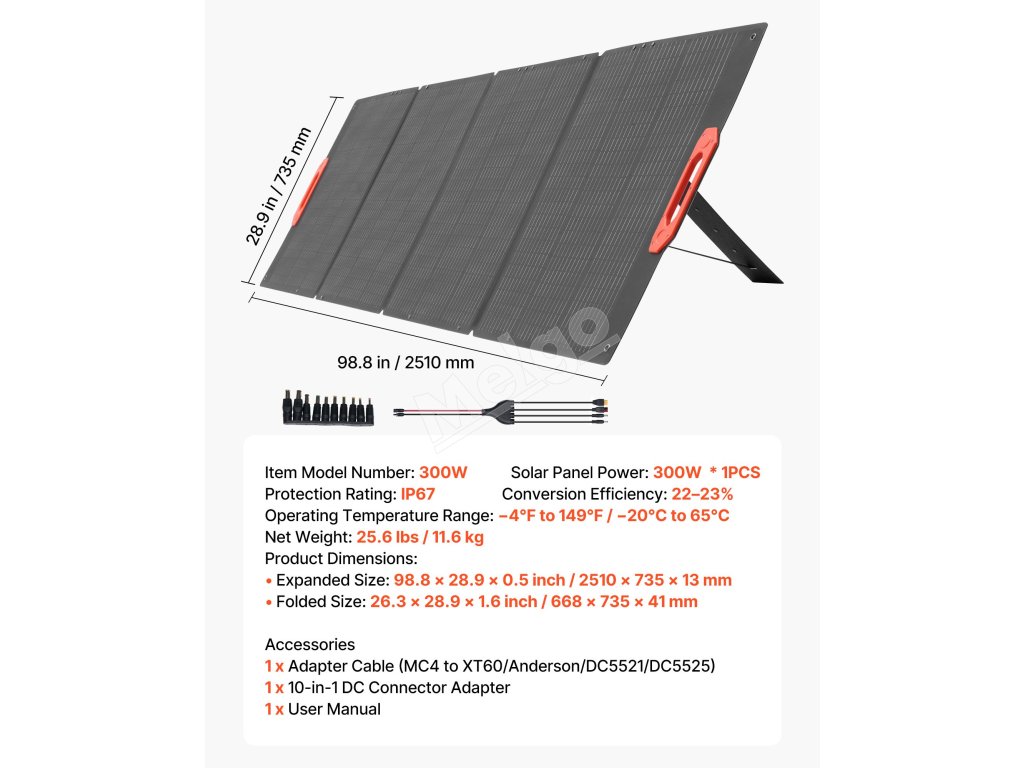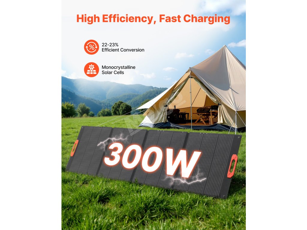 Skladací monokryštalický solárny panel 300 W, 23% účinnosť, ip67, mc4