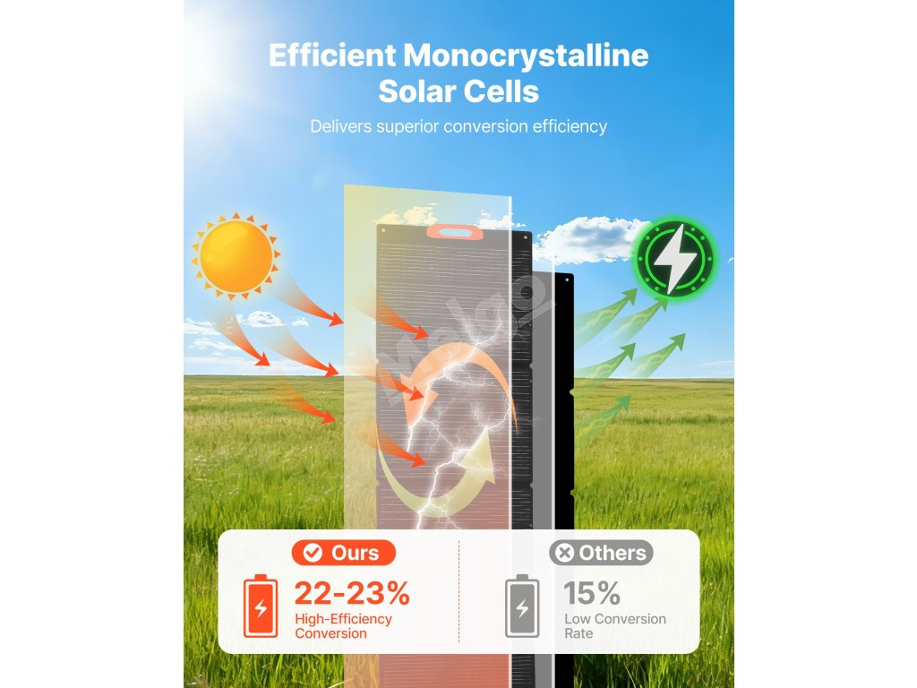 Tento prenosný mono solárny panel, ktorý je skladný, ľahký a pripravený na cestovanie, je ideálnym spoločníkom na domáce použitie alebo na dobrodružstvá v prírode - kempovanie, turistiku alebo rybárčenie, pričom účinne premieňa slnečné svetlo na využiteľnú energiu.