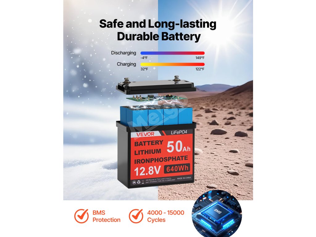 Vysokokvalitná batéria LiFePO₄ podporuje 4 000 - 15 000 cyklov hlbokého nabitia. Zabudovaný systém BMS poskytuje inteligentnú ochranu a stabilný výstup, čím poskytuje trvalú energiu pre aplikácie mimo siete.