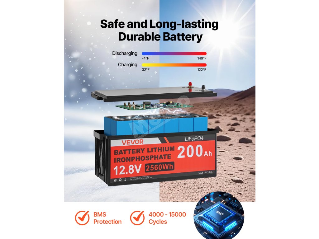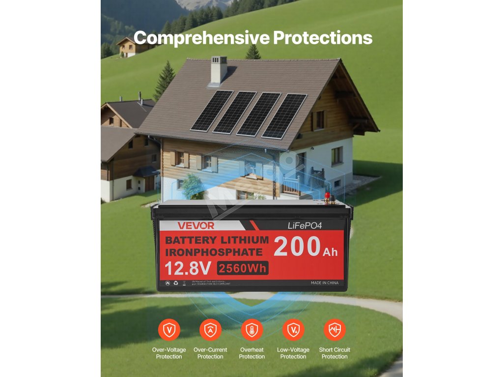 | LiFePO₄ batéria | 12.8V 200Ah |