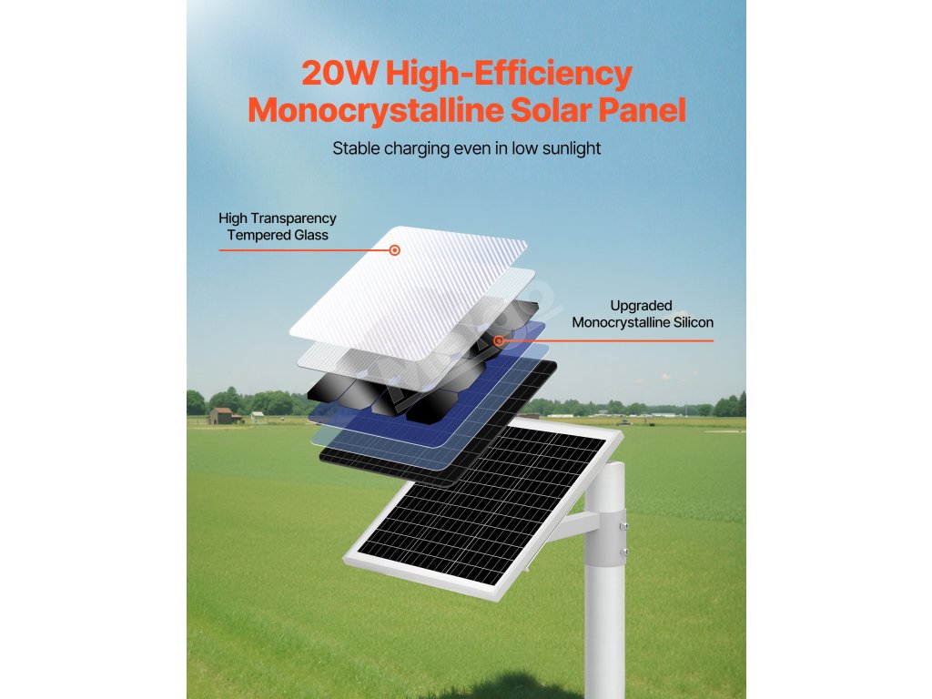 Náš 20W solárny nabíjač 12V akumulátorov využíva slnečnú energiu na spoľahlivé napájanie 12V akumulátorov. Je skonštruovaný s vysokoúčinnými monokryštalickými solárnymi článkami a zabezpečuje stabilné nabíjanie a údržbu pre otvárače brán, elektrické ohradníky, farmy, trávniky atď