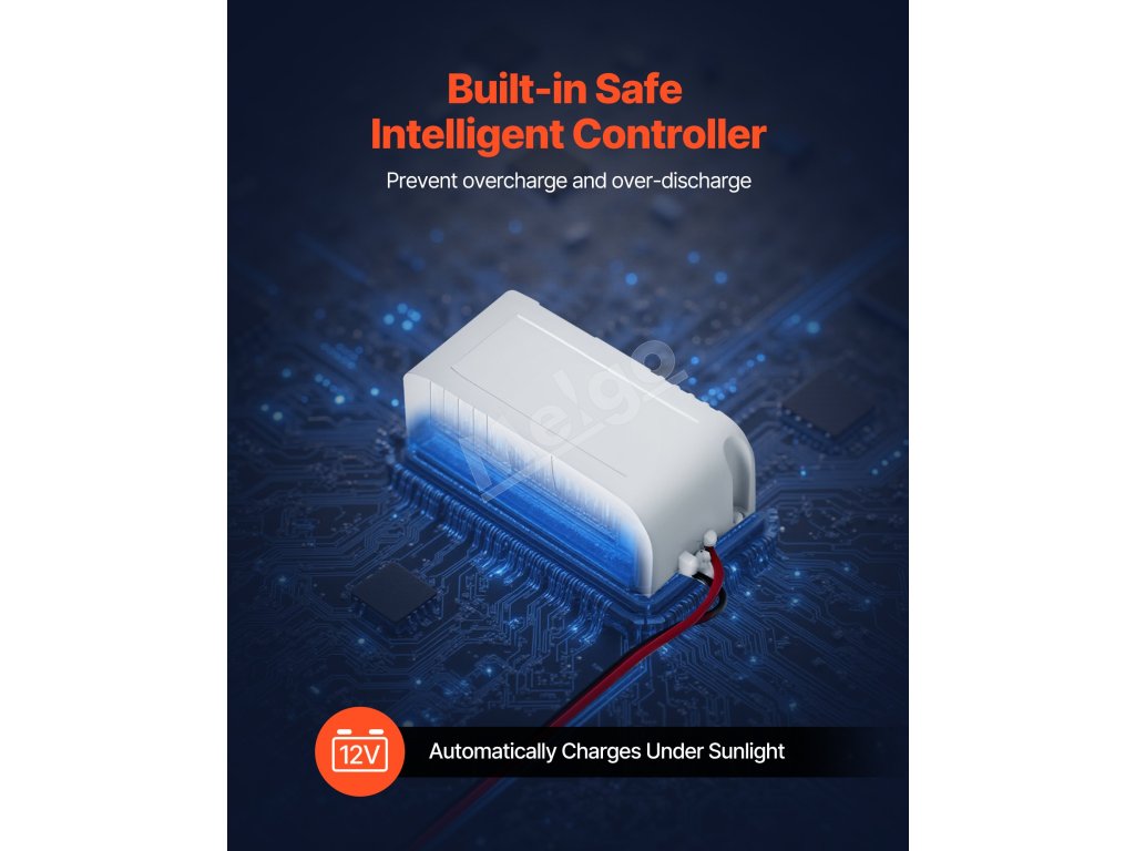 Nabíjačka batérií so solárnym panelom má zabudovaný inteligentný regulátor, ktorý poskytuje viacero vrstiev ochrany. Zabezpečuje optimalizovanú účinnosť nabíjania a zároveň chráni batériu a solárny systém