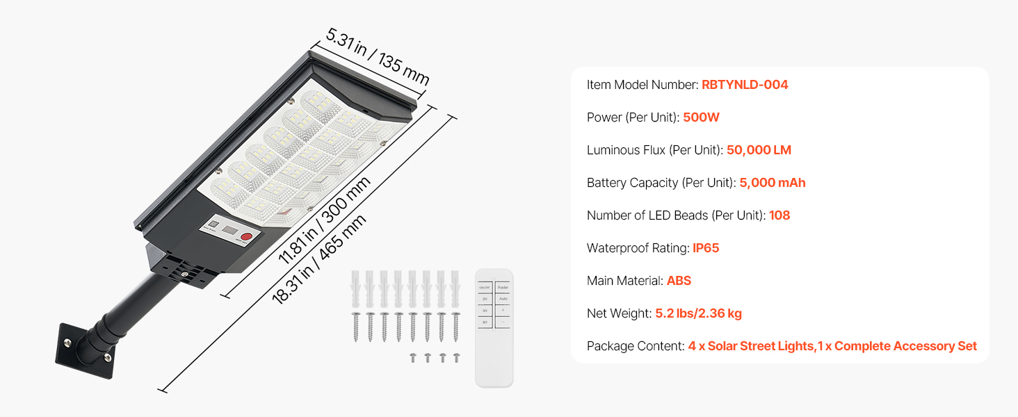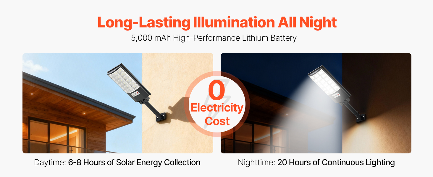 Toto solárne vonkajšie osvetlenie s 5730 vysoko svietivými, energeticky úspornými LED diódami vyžaruje svetlo v uhle 240°. Dokáže osvetliť veľkú plochu dvora jasným svetlom bez blikania.