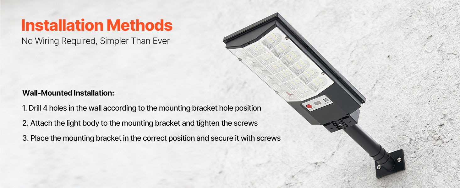 Toto solárne pouličné osvetlenie obsahuje všetko potrebné montážne príslušenstvo a je ľahko inštalovateľné. Nie je potrebné žiadne zapojenie ani vedenie. Stačí ho pripevniť skrutkami a hotovo.