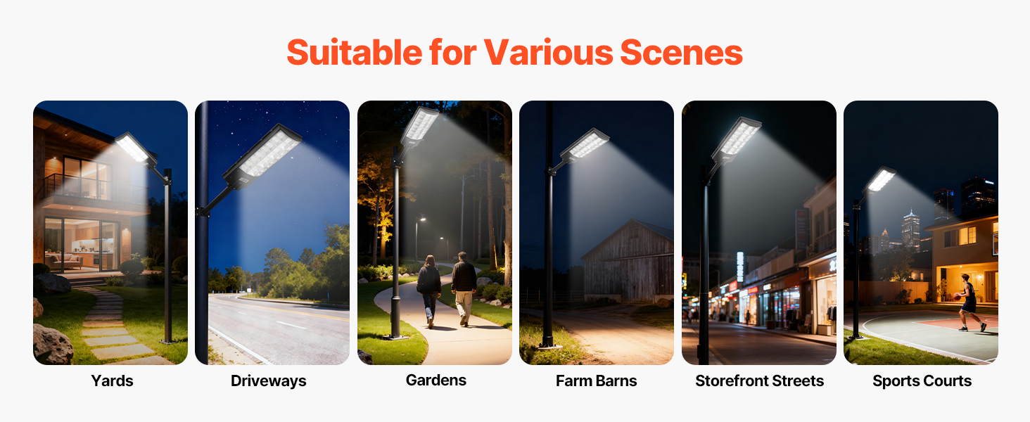 Naše komerčné solárne vonkajšie osvetlenie je ideálne pre nádvoria, príjazdové cesty a záhrady, ako aj farmy a komerčné ulice a poskytuje jasné osvetlenie.