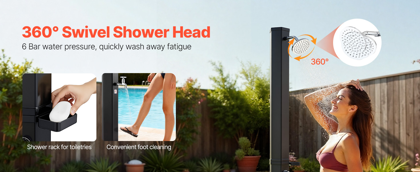 Skvelé pre bazény na dvore, kempovanie alebo dni na pláži. Rýchlo opláchnite piesok, soľ alebo opaľovací krém pred odchodom do interiéru. Ponúka pohodlný spôsob osvieženia po vonkajších aktivitách.