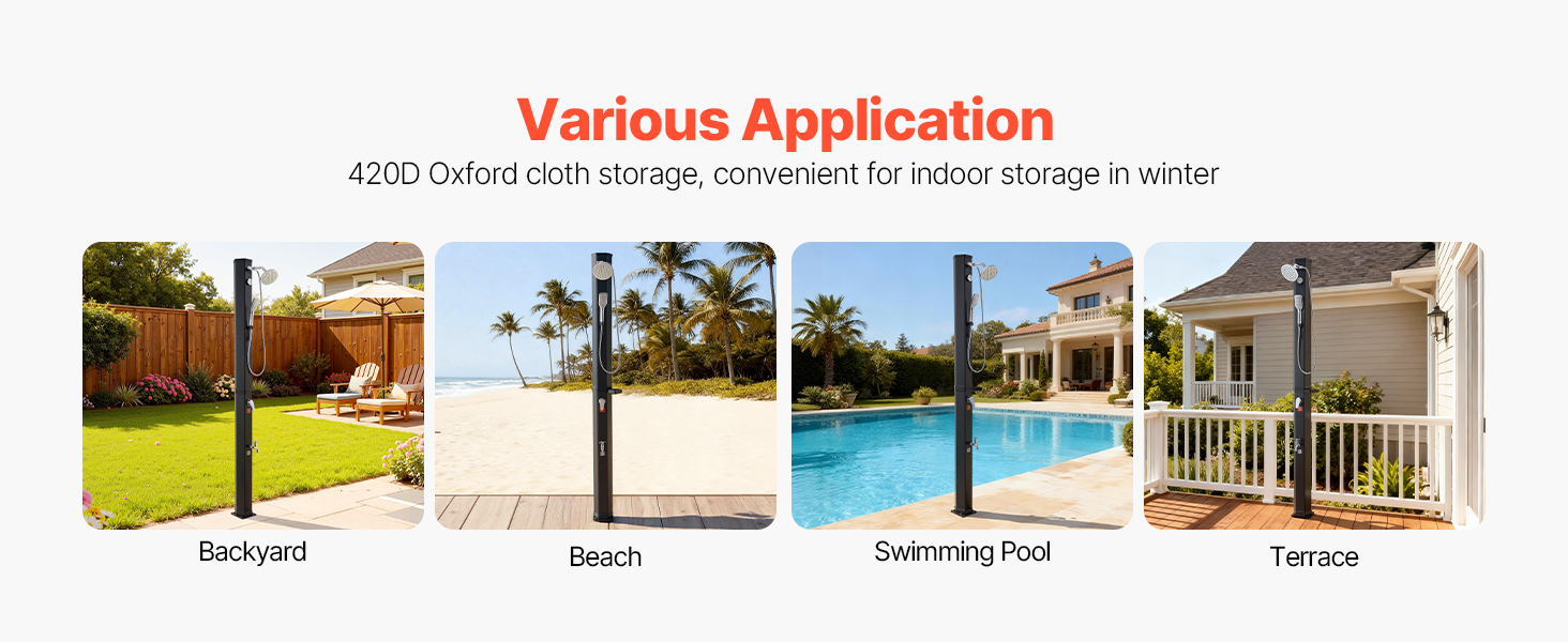 Vhodné pre bazény na dvore, kempovanie alebo dni na pláži. Rýchlo opláchnite piesok, soľ alebo opaľovací krém pred vstupom do interiéru. Ponúka pohodlný spôsob osvieženia po outdoorových aktivitách.