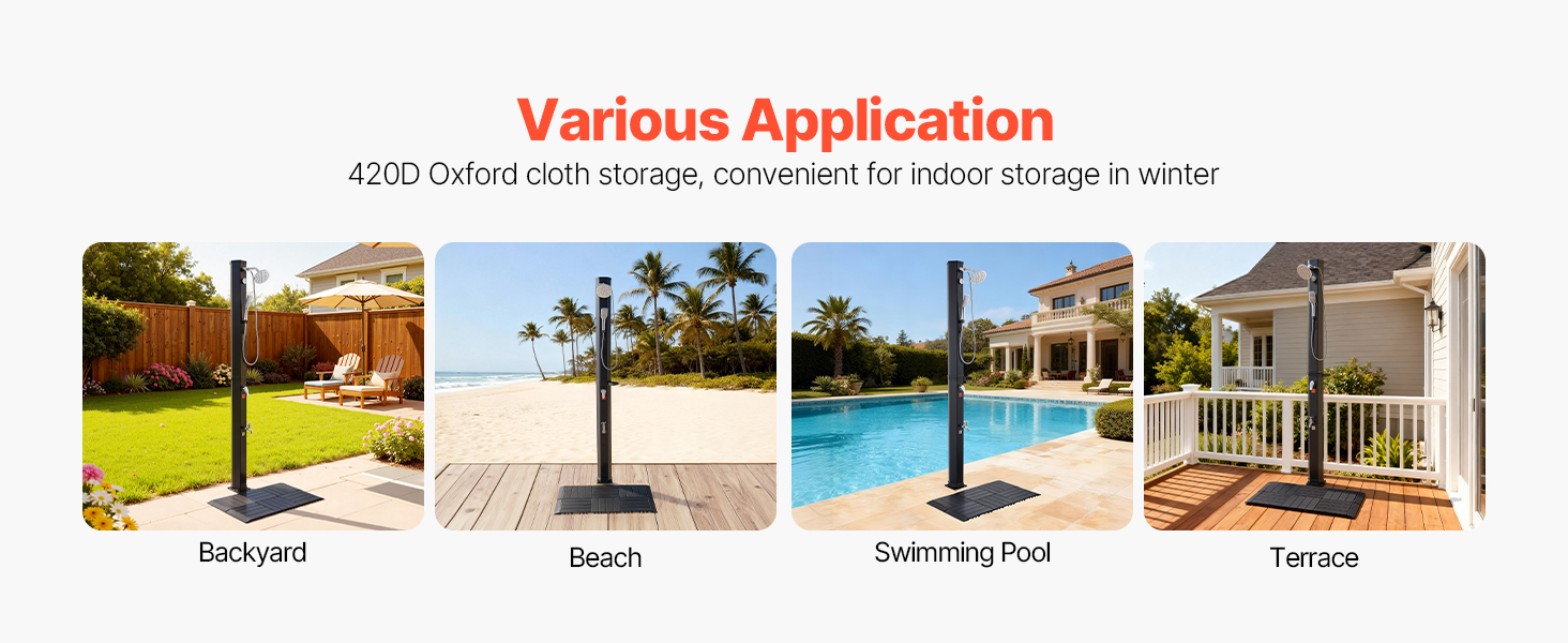 Vhodné pre bazény na dvore, kempovanie alebo dni na pláži. Rýchlo opláchnite piesok, soľ alebo opaľovací krém pred vstupom do interiéru. Ponúka pohodlný spôsob osvieženia po outdoorových aktivitách.