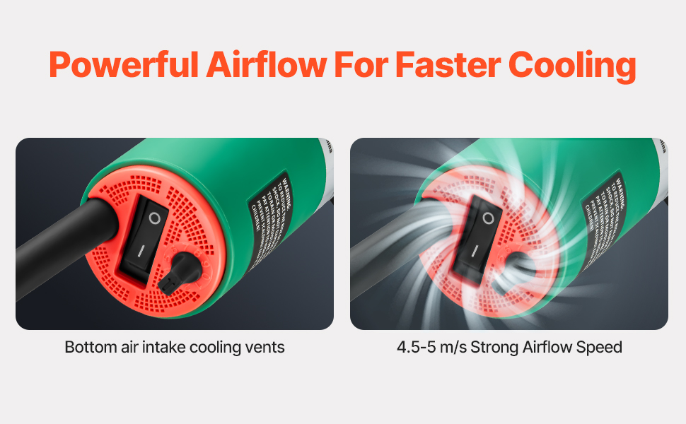 Táto teplovzdušná zváračka plastov vybavená výkonným systémom prúdenia vzduchu zlepšuje cirkuláciu vzduchu a urýchľuje odvod tepla, čím zabezpečuje stabilný výkon počas dlhšieho používania.