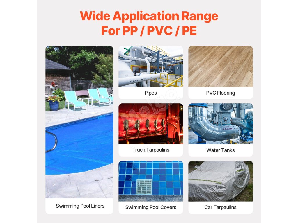 Horúcovzdušná zváracia pištoľ VEVOR na plasty ponúka 4 veľkosti trysiek - ideálne na presné zváranie PVC rúr aj na rozsiahle práce, ako sú opravy plachiet. Ľahko prepínajte medzi tryskami, aby ste zvládli akúkoľvek úlohu, ktorá vám príde do cesty.