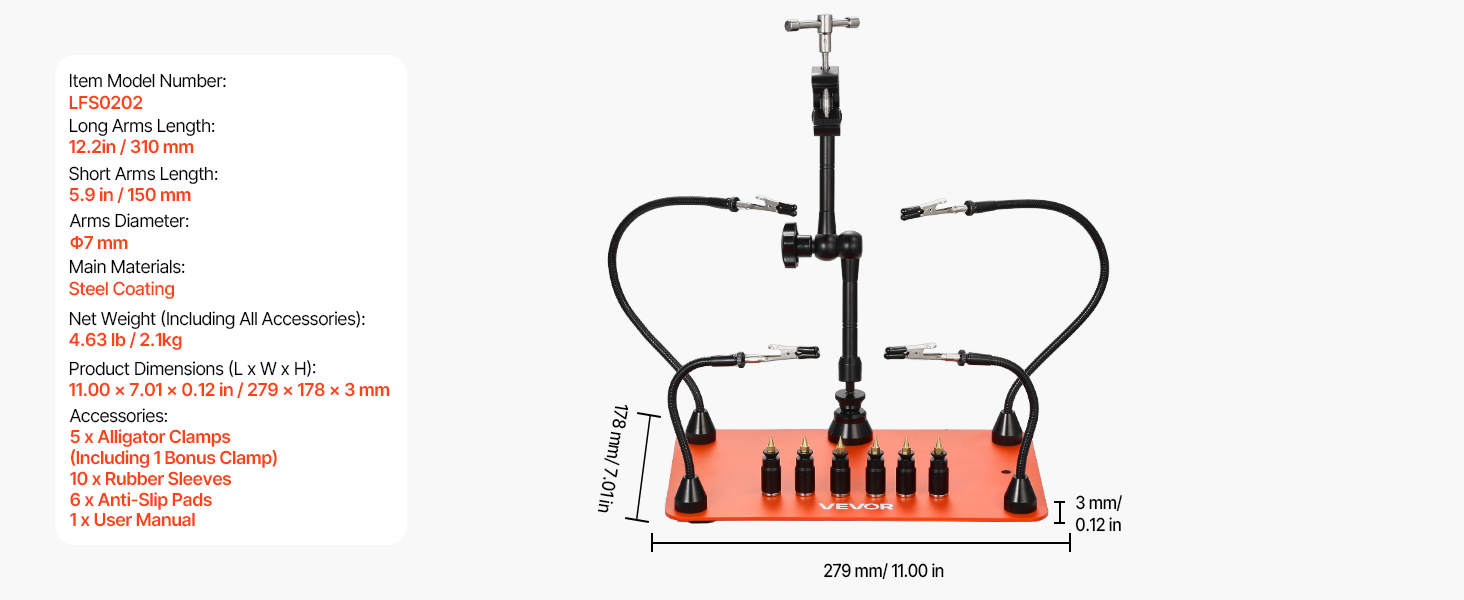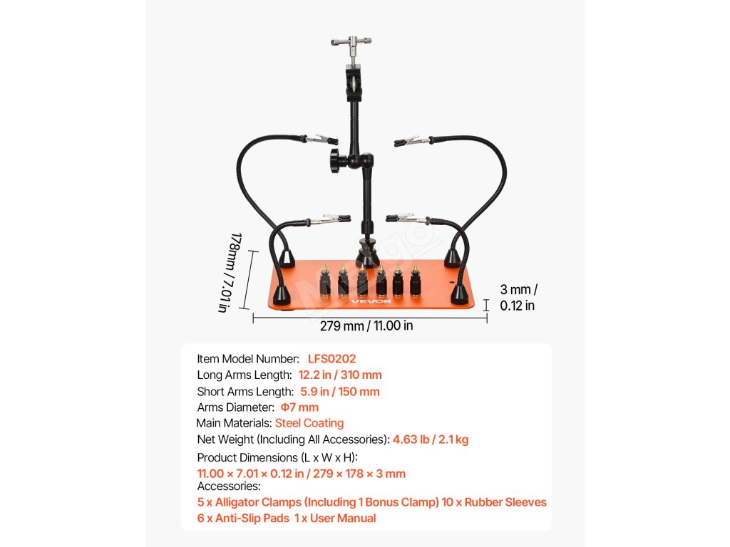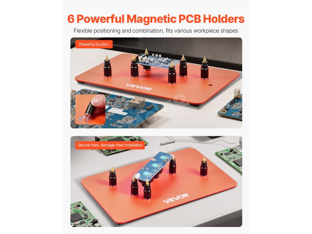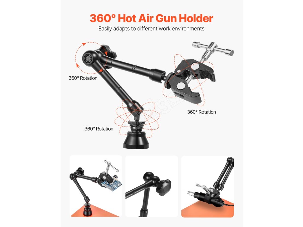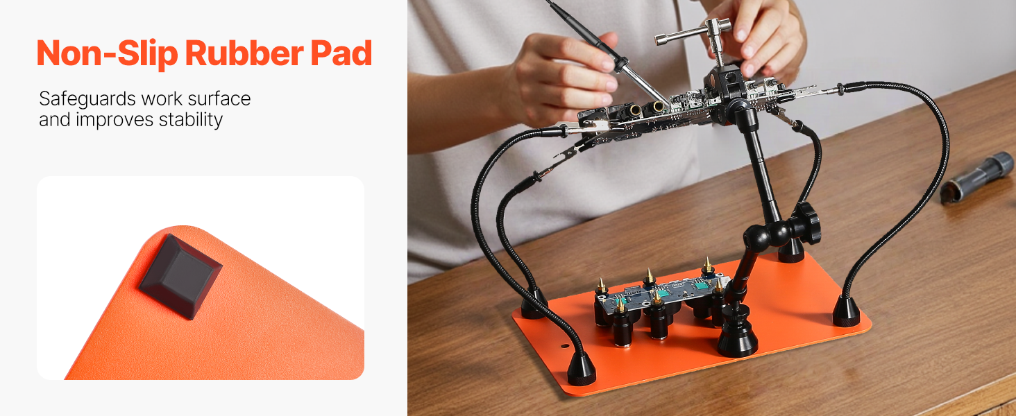 Toto náradie tretej ruky sa dodáva s protišmykovými gumovými podložkami, ktoré poskytujú vysoké trenie, účinne zabraňujú posúvaniu zariadenia a zabezpečujú stabilitu počas používania. Mäkký gumový materiál odolný proti opotrebovaniu tiež zabraňuje poškriabaniu a poškodeniu pracovného povrchu.