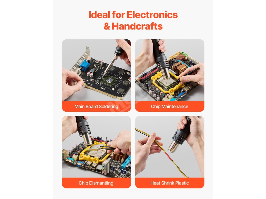 Táto kompletná súprava nástrojov obsahuje 5 x spájkovacie hroty, 3 x teplovzdušné trysky, 30 g bezolovnatého spájkovacieho drôtu, čistiacu hubku, odspájkovaciu pumpu, pinzetu a ďalšie nástroje, ktoré sú navrhnuté tak, aby zabezpečili efektívne dokončenie vašich prepracovaní a spájkovacích úloh.