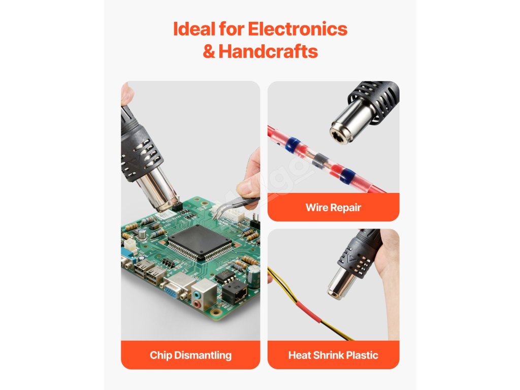 Premeňte svoje opravy pomocou našej teplovzdušnej prepracovacej stanice. S maximálnym výkonom 1000 W, teplotami 212℉ - 896℉, 99-stupňovou reguláciou prúdenia vzduchu, 3 prednastavenými teplotnými kanálmi, automatickým režimom spánku a pohotovostným režimom je to vaše univerzálne riešenie na opravu drôtov, demontáž čipov, zmršťovanie plastu atď.