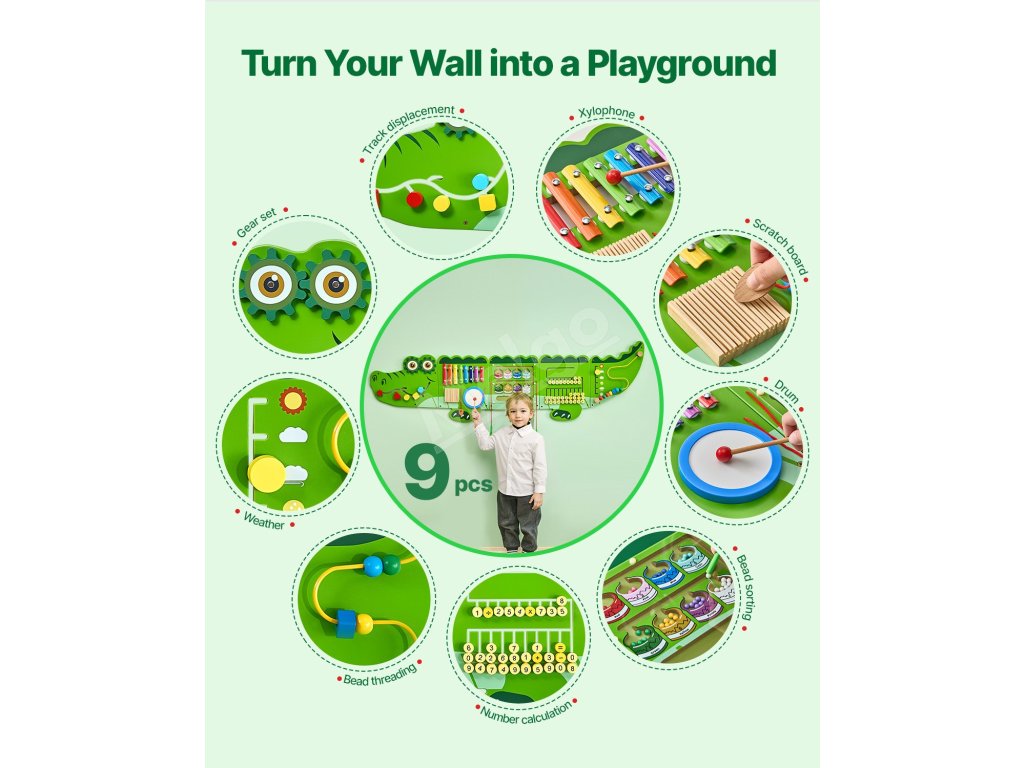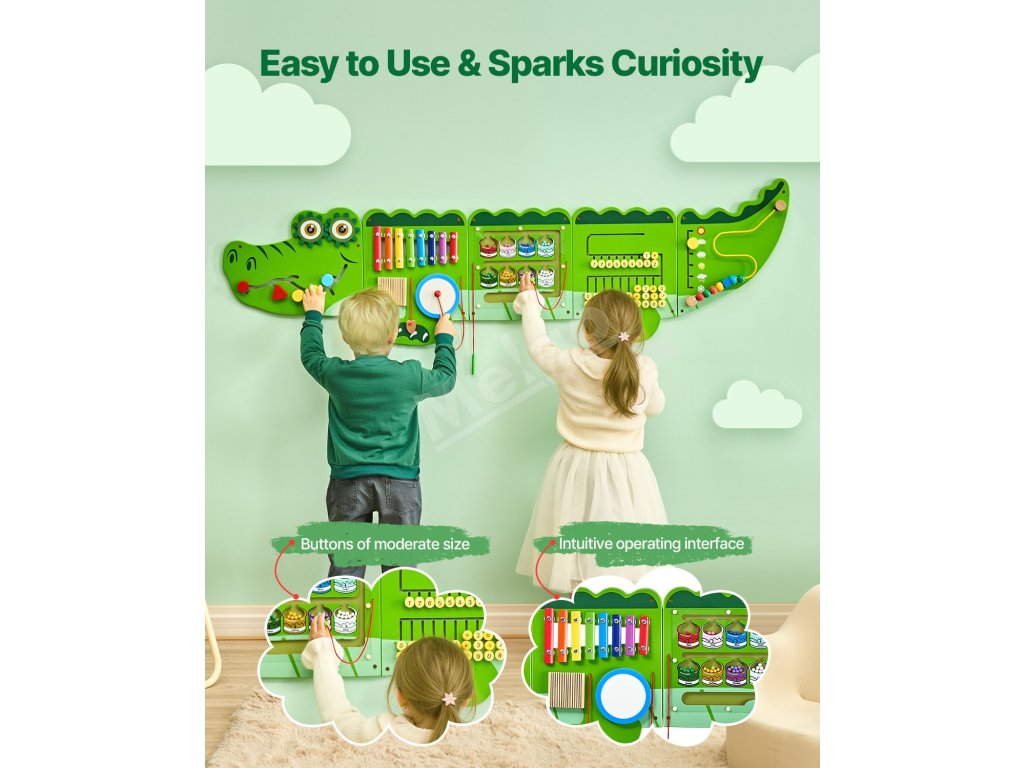 Senzorický nástenný panel je určený na samostatnú alebo skupinovú hru a je ideálny pre rodiny s viacerými deťmi, centrá včasného vzdelávania alebo detské ihriská. Skvelý na podporu samostatnej aj kooperatívnej zábavy!