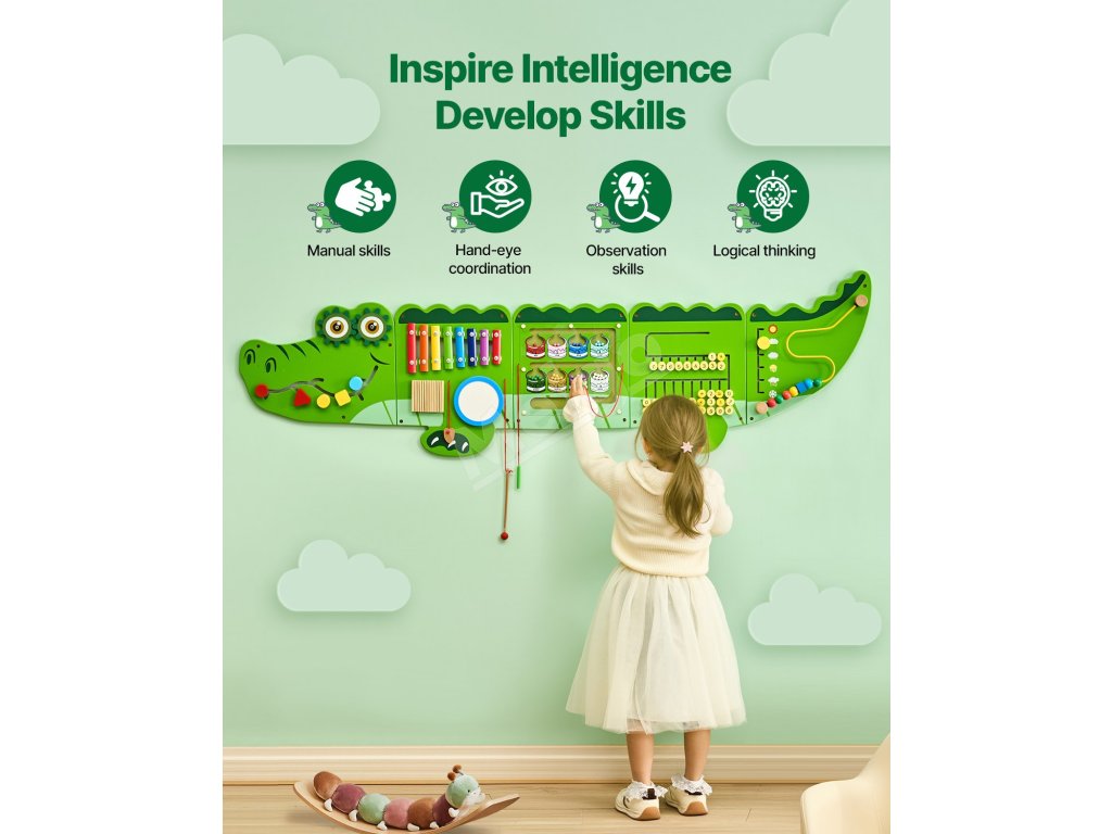 Podporte zvedavosť a učenie vášho dieťaťa pomocou tohto nástenného panelu s aktivitami inšpirovanými metódou Montessori! Náš nástenný panel s aktivitami podporuje skúmanie a zábavu prostredníctvom multisenzorickej hry, ktorá je ideálna pre rozvoj mladých myslí.