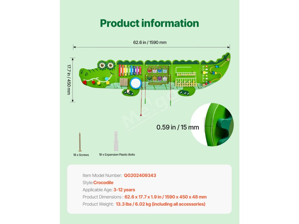 Tento panel na stenu aktivít busy board je vyrobený z hrubej MDF dosky, je odolnejší ako plast a je skonštruovaný tak, aby vydržal roky hry a rástol spolu s vaším dieťaťom bez toho, aby sa ľahko zlomil alebo vybledol.