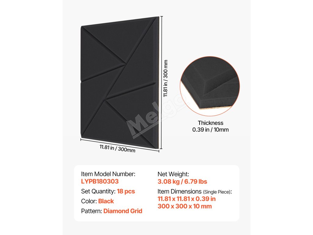 Akustické panely 18 ks samolepiace 11.8×11.8×0.4 inch čierne