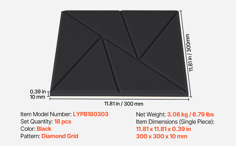 | Rozmery položky (jeden kus) | 300 x 300 x 10 mm / 11,81 x 11,81 x 0,39 palca |