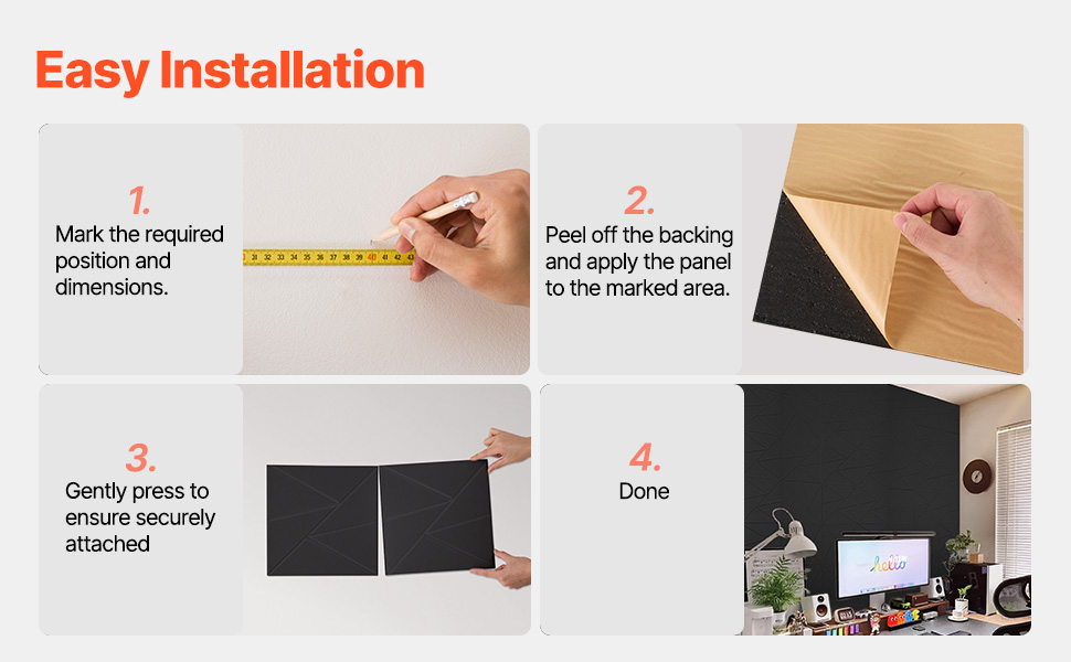 Zablokujte hluk pomocou našich vysokokvalitných stenových panelov! Jednoduchá aplikácia vďaka samolepiacemu dizajnu, bez potreby vŕtania. Bez zápachu, silná zvuková izolácia a k dispozícii vo viacerých farbách, ktoré sa hodia ku každému interiéru. Ideálne do obývacích izieb, kancelárií, ateliérov a ďalších priestorov!