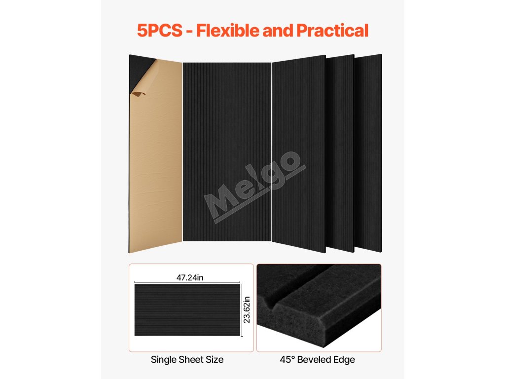 Akustické panely 5 ks samolepiace 47.2×23.6×0.4 in polyester čierne
