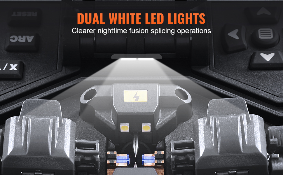 Zabudované dvojité LED svetlá poskytujú vynikajúce osvetlenie, tento optický fúzny spájkovač umožňuje presné zarovnanie vlákien aj pri slabom osvetlení alebo vo vonkajších podmienkach. Pracujte s istotou bez ohľadu na svetelné podmienky.