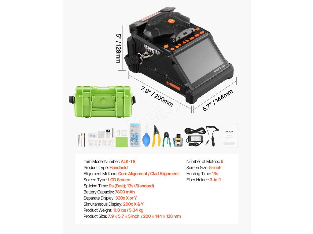Spájkovač optických vlákien, 6 motorov, 6s spájanie, 13s ohrev, 5" lcd