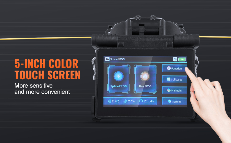Tento fúzny spájkovač optických vlákien, ktorý je vybavený 5-palcovým farebným dotykovým displejom s používateľsky prívetivým rozhraním, ponúka viacero režimov zobrazenia na splnenie rôznych potrieb, vďaka čomu je možné ľahko sledovať každý detail počas celého procesu spájania.