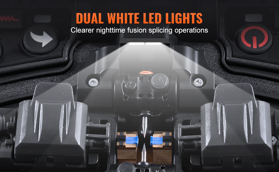 Zabudované dvojité LED svetlá poskytujú vynikajúce osvetlenie, tento optický fúzny spájkovač umožňuje presné zarovnanie vlákien aj pri slabom osvetlení alebo vo vonkajších podmienkach. Pracujte s istotou bez ohľadu na svetelné podmienky.