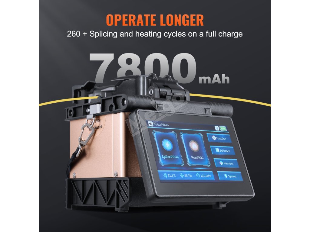 Tento fúzny spájkovač na zarovnávanie plátovaných vlákien navrhnutý so zosilnenou ochranou spoľahlivo funguje v extrémnych podmienkach vrátane dažďa, vysokých teplôt, snehových búrok a vysokých nadmorských výšok, takže je ideálny na náročné vonkajšie aplikácie.