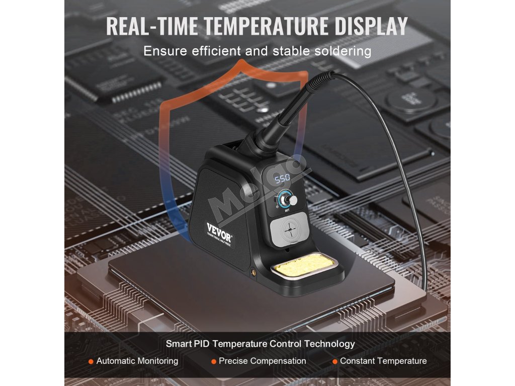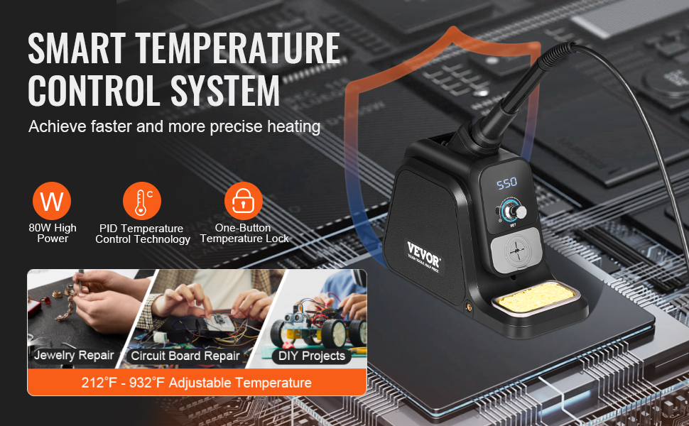 Inteligentná regulácia teploty pre rýchlejšie a presnejšie zahrievanie! Táto spájkovacia stanica s vysokým výkonom 80 W, reguláciou teploty PID a nastaviteľnou teplotou 212℉-932℉ zabezpečuje efektívne spájkovanie, ideálne na opravy dosiek plošných spojov, opravy šperkov, projekty pre domácich majstrov atď.