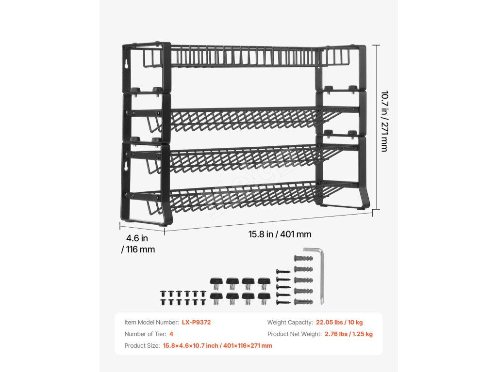 Stojan na koreničky odnímateľný, 4-poschodový do skrinky, 15.8×10.7 in