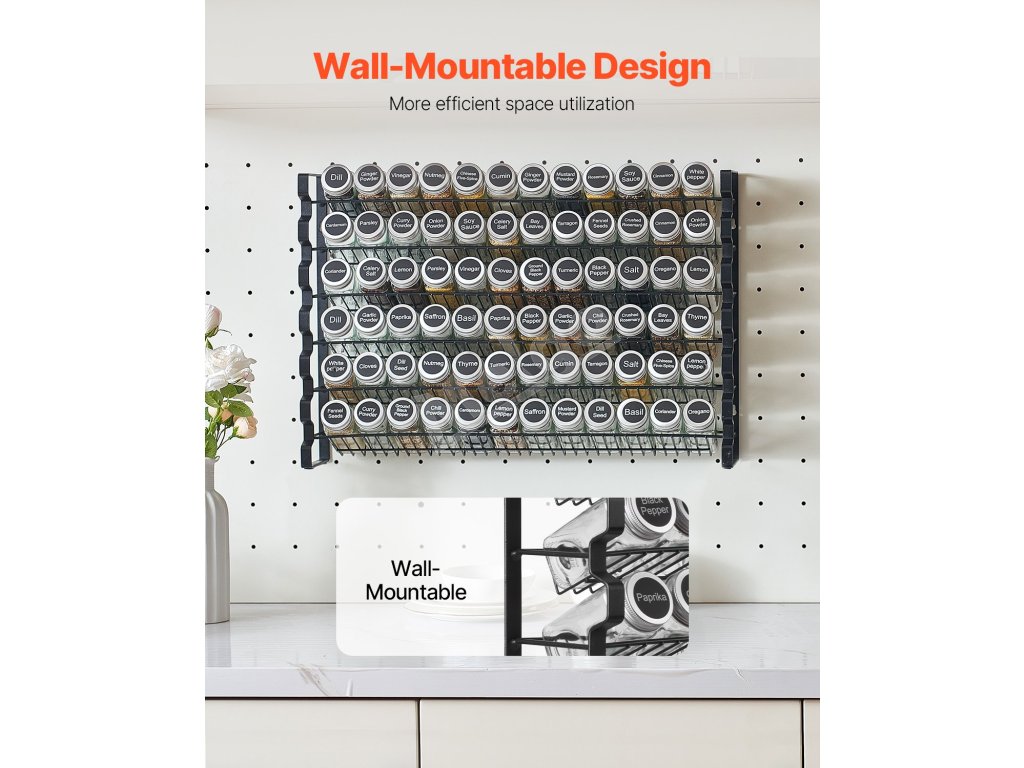 Táto priestorovo úsporná súprava na uskladnenie korenín podporuje inštaláciu na pracovnú dosku aj na stenu. Umiestnite ju na pracovnú dosku, aby ste ušetrili miesto v skrinke, alebo ju pripevnite na stenu, aby ste naplno využili vertikálny priestor a udržali pracovnú dosku upratanú a organizovanú.