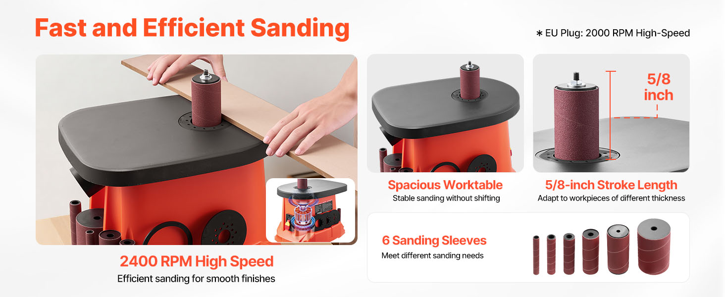 Táto oscilačná vretenová brúska si ľahko poradí s projektmi na opracovanie dreva, dokončovanie nábytku aj s domácimi prácami. Poskytuje hladšie a profesionálnejšie brúsenie, ideálne pre nadšencov a profesionálne dielne.