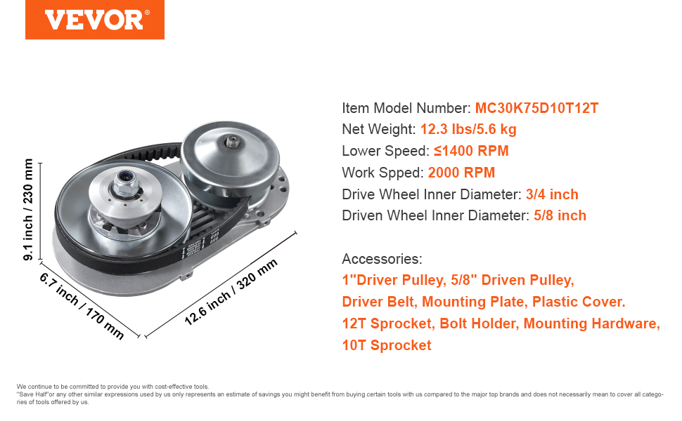 Modernizovaný asymetrický dizajn so 4-palcovým vnútorným priemerom hnacieho kolesa a 5/8-palcovým vnútorným priemerom hnaného kolesa. Táto konštrukcia znižuje spotrebu paliva a zároveň zabezpečuje rýchlu odozvu motora na zvýšenie bezpečnosti a výkonu.