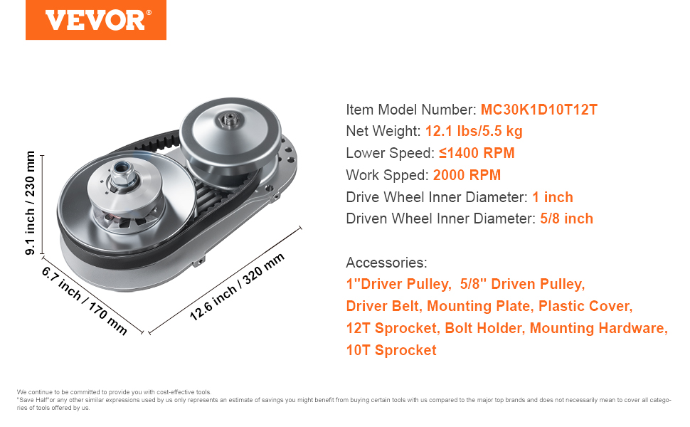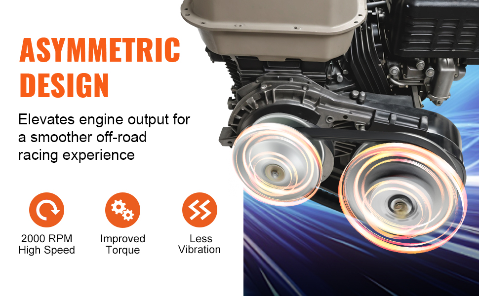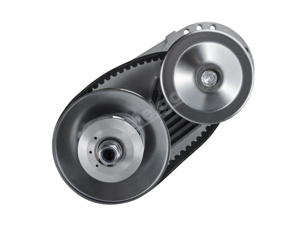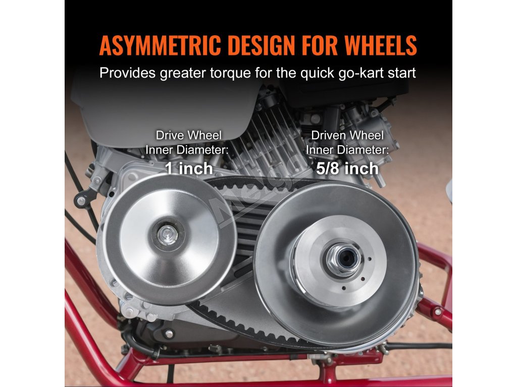 Modernizovaný asymetrický dizajn s 1-palcovým vnútorným priemerom hnacieho kolesa a 5/8-palcovým vnútorným priemerom hnaného kolesa. Táto konštrukcia znižuje spotrebu paliva a zároveň zabezpečuje rýchlu odozvu motora na zvýšenie bezpečnosti a výkonu.