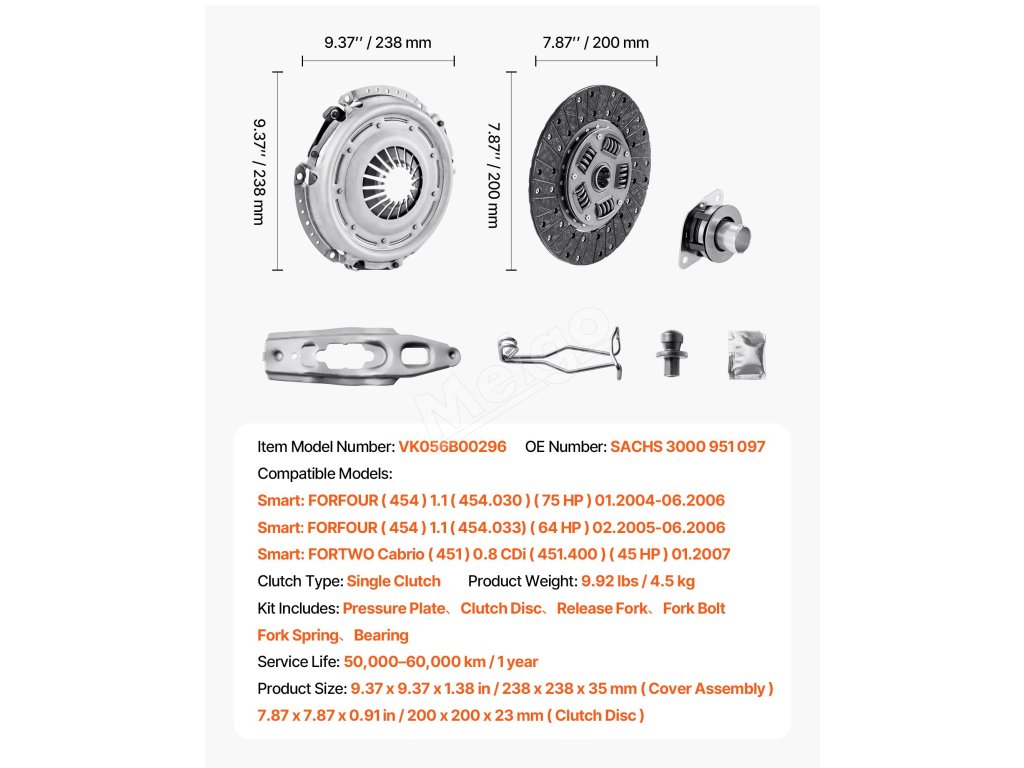 Sada spojky pre Forfour/Fortwo 2004–2007 64–75 HP s tlakovou doskou