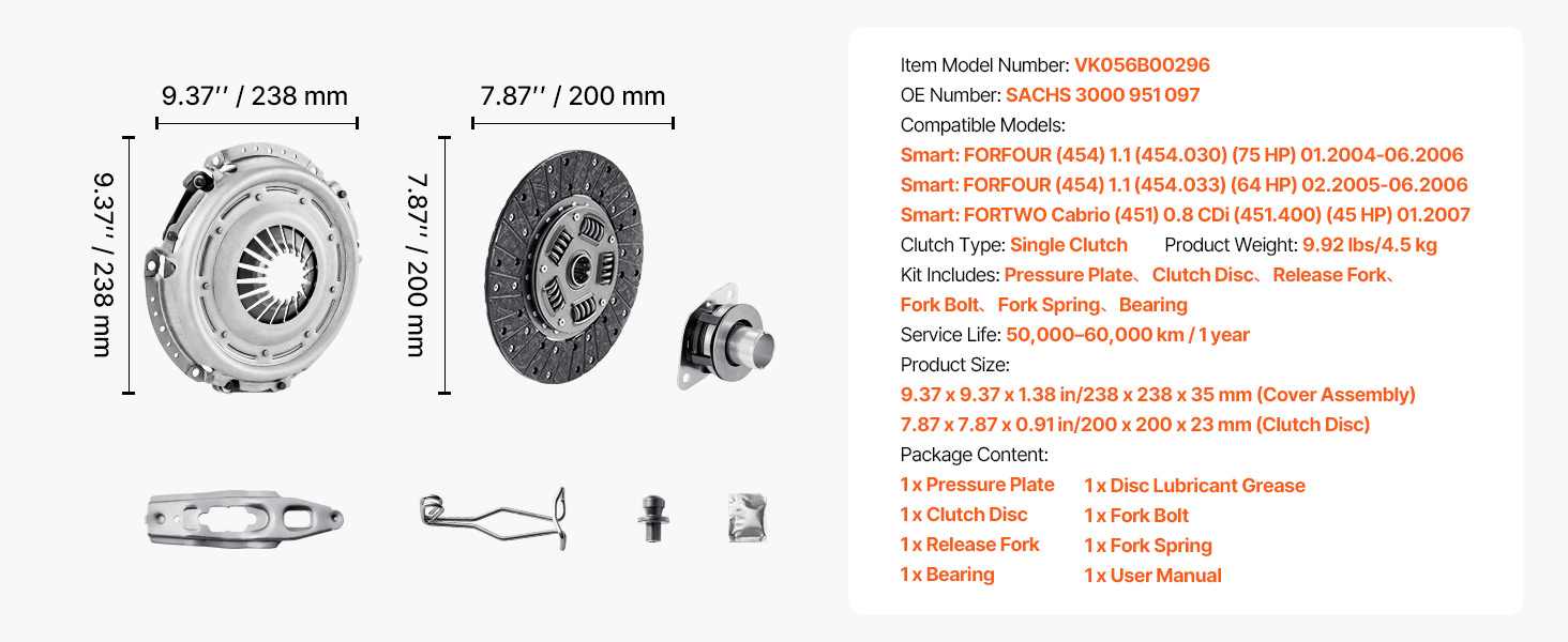 | Rozmery spojkového kotúča | 7.87 x 7,87 x 0,91 in/200 x 200 x 23 mm |