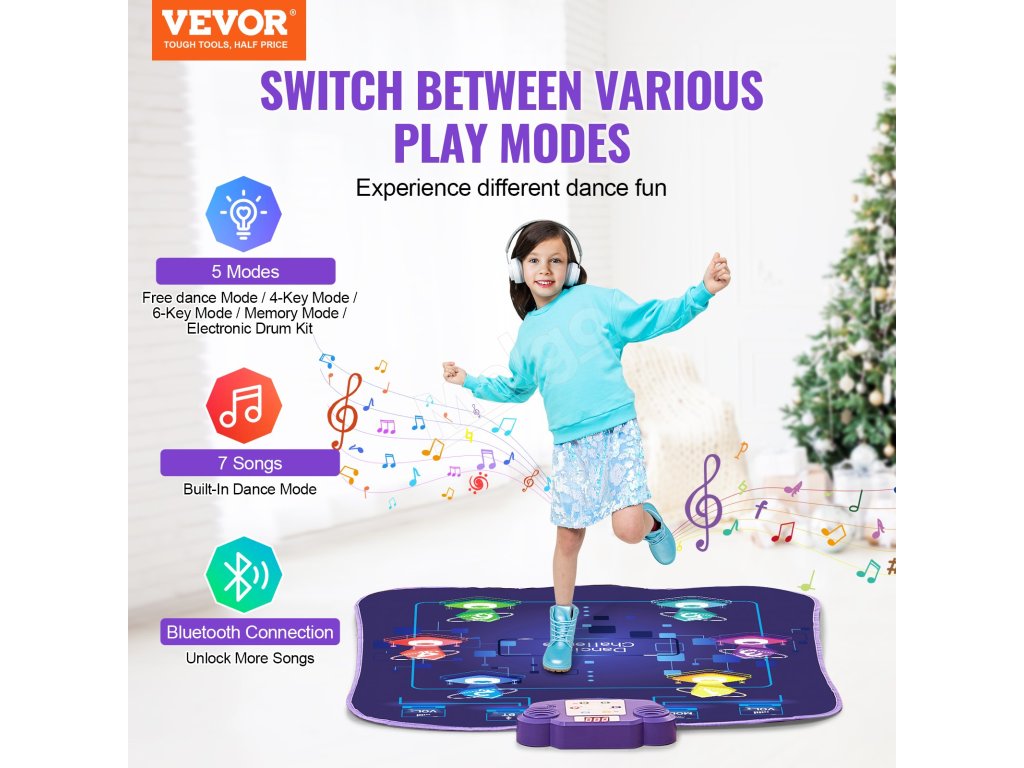 Naša tanečná podložka ponúka 5 režimov (normálny režim, režim so 4 tlačidlami a 3 úrovňami, režim so 6 tlačidlami a 3 úrovňami, pamäťový režim a elektronický bubon). Prepínajte a tancujte podľa svojej nálady!
