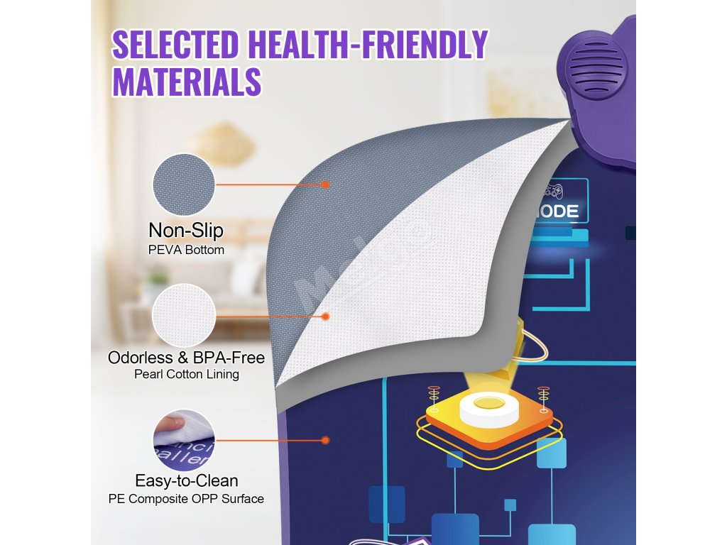 Našu tanečnú podložku ľahko pochopia a zahrajú si na nej aj tí najmenší. Jasné svetlá pod každou šípkou sa rozsvecujú a zhasínajú a usmerňujú každý krok. Je vyrobená z odolného vinylu s PE-kompozitným OPP povrchom, je robustná a má dlhú životnosť. Protišmyková spodná časť z PEVA ju udrží na mieste, takže sa môžete sústrediť na zábavu!