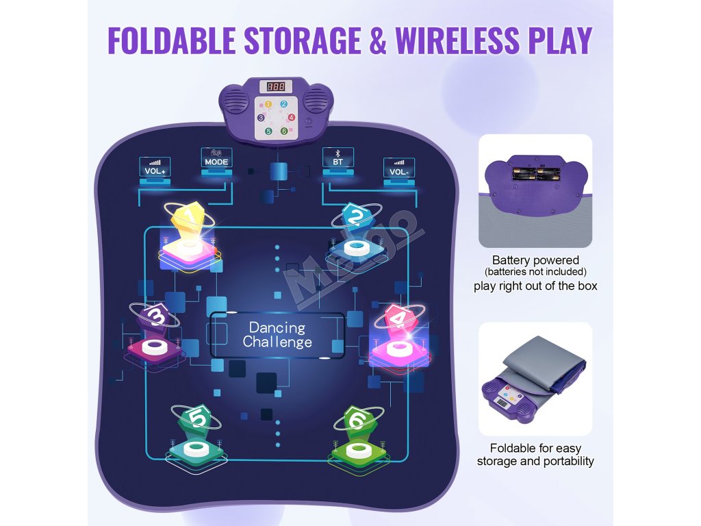 Tanečná podložka 6 tlačidiel, Bluetooth, LED, 5 režimov vstavaná hudba