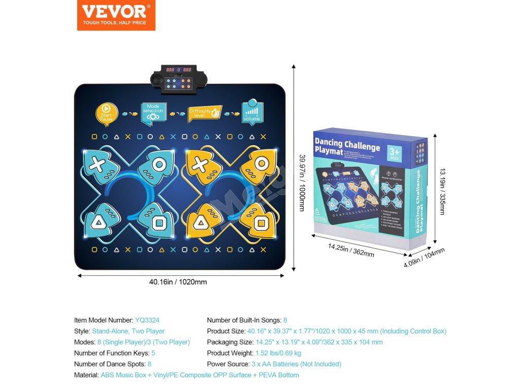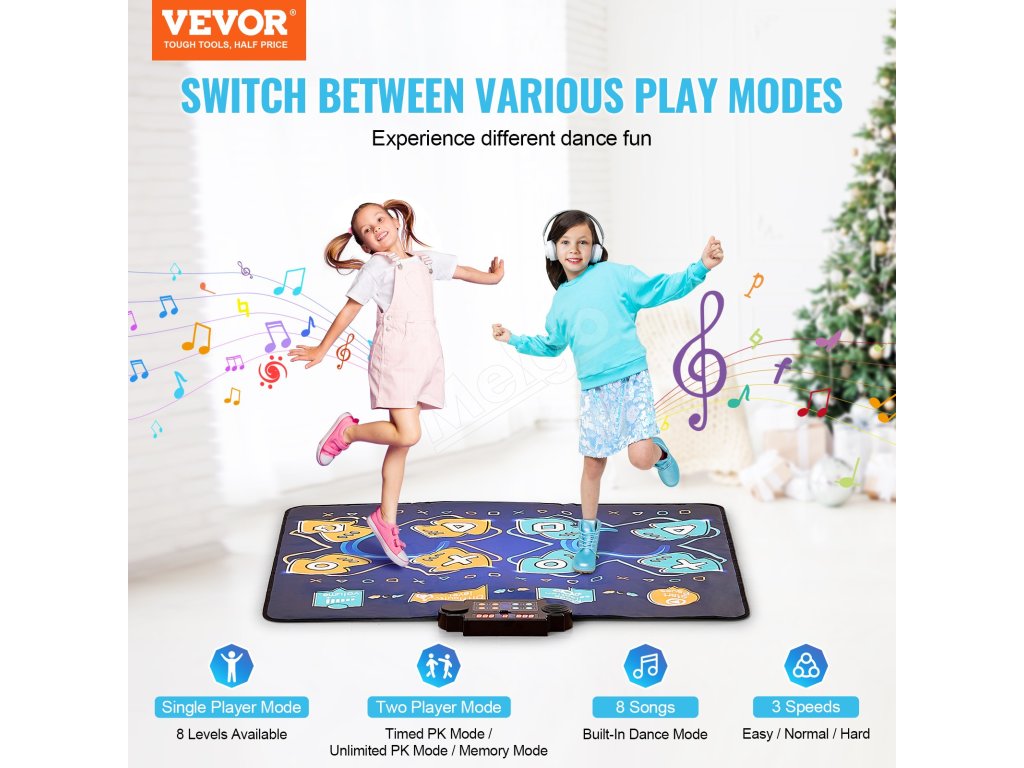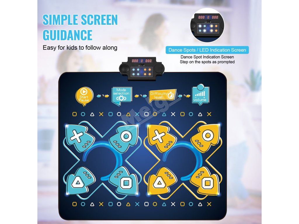 Naša tanečná podložka ponúka 2 režimy (režim pre jedného hráča s 8 úrovňami a 3 stupňami obtiažnosti: ľahký, normálny, ťažký a režim pre dvoch hráčov s 3 hernými variantmi: časovo obmedzený PK, neobmedzený PK a pamäťový režim) a 8 skladieb. Prepínajte a hrajte podľa svojej nálady!